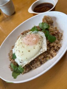 パクチーと 目玉焼きが乗ってあります。 アジア系の料理はやっぱし美味しいです。