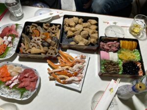 実家のおせちを撮ってみました。 カニにマグロにとてもお魚が豪華でした。 それから手作りの