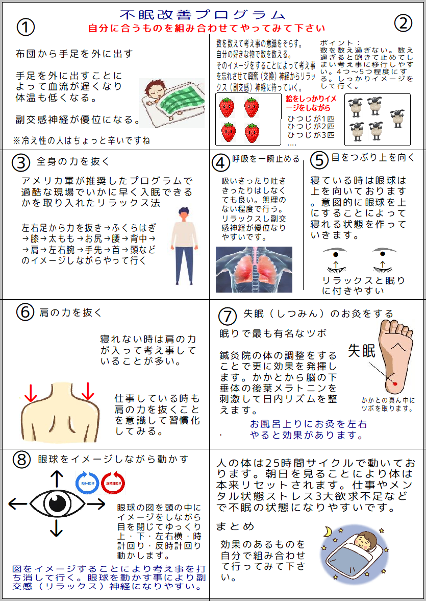 睡眠方法 呼吸法、ツボ押し、体温調整、眼球運動